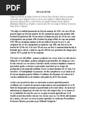 Sfântă cuvioasă parascheva, în genunchi vin la tine, ca în genunchi să te rogi părintelui ceresc pentru iertarea păcatelor mele, săvârșite cu fapta sau cu gândul, cu știința sau cu neștiința mea, …. Sfântă cuvioasă parascheva, în genunchi vin la tine, ca în genunchi să te rogi părintelui ceresc pentru iertarea păcatelor mele, săvârșite cu fapta sau cu gândul, cu știința sau cu neștiința mea, … May 24, 2019 · prea sfântă treime, primeşte rugaciunea mea şi slavă ţie pentru toate. Stăpâna mea preabinecuvântată, folositoarea neamului omenesc, scăparea şi mântuirea celor ce aleargă la tine !. Daca vă este mai simplu, rostiți rugăciunea de 7 ori pe zi, timp de 70 de zile.